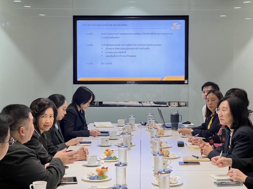 Previous Next “…มุ่งเป้าหมายการพัฒนาวิสาหกิจเพื่อสังคม ผนึกกำลัง สวส. และตลาดหลักทรัพย์แห่งประเทศไทย…” เมื่อวันที่ 8 เมษายน 2568 รองศาสตราจารย์ทองทิพภา วิริยะพันธุ์ กรรมการส่งเสริมวิสาหกิจเพื่อสังคม ผู้แทนสภาหอการค้าไทย และรองประธานคณะกรรมการพัฒนาสังคมและ CSR หอการค้าไทย พร้อมด้วยผู้บริหารและเจ้าหน้าที่สำนักงานส่งเสริมวิสาหกิจเพื่อสังคม ได้ร่วมประชุมกับ คุณนงรัก งามวิทย์โรจน์ ผู้อำนวยการอาวุโส ฝ่ายพัฒนาเพื่อสังคม และคณะ ณ ตลาดหลักทรัพย์แห่งประเทศไทย เพื่อประสานความร่วมมือและกำหนดแนวทางการการทำงานร่วมกัน 1. กรอบความร่วมมือระยะสั้น : Collaborative Partnership การพัฒนาชุดองค์ความรู้ในการตอบสนองต่อวิสาหกิจเพื่อสังคม การส่งเสริมและบ่มเพาะวิสาหกิจเพื่อสังคม การถอดบทเรียนการพัฒนาและต้นแบบวิสาหกิจเพื่อสังคม เพื่อสื่อสารและสร้างการรับรู้ต่อสังคมของกลไกวิสาหกิจเพื่อสังคม รวมถึงการพัฒนา ESG rating ในกรอบการพัฒนาเรื่องสังคม S : Social ให้สามารถวัดผลการเปลี่ยนแปลงทางสังคมได้สะท้อนถึงผลลัพธ์ทางสังคม 2.กรอบความร่วมมือระยะยาว Policy Partnerships ร่วมมือในการพัฒนาสภาพแวดล้อมทางนโยบายโดยใช้กลไกวิสาหกิจเพื่อสังคมเข้าไปสอดรับในการพัฒนาเศรษฐกิจพร้อมทั้งเศรษฐกิจฐานราก รวมถึง พัฒนาข้อเสนอเชิงนโยบายต่อไป โดยในการดำเนินการเร่งด่วนจะมีการพัฒนา MOU เพื่อเป็นกรอบในความร่วมมือ ภายในเดือนกรกฎาคม 2568 […]